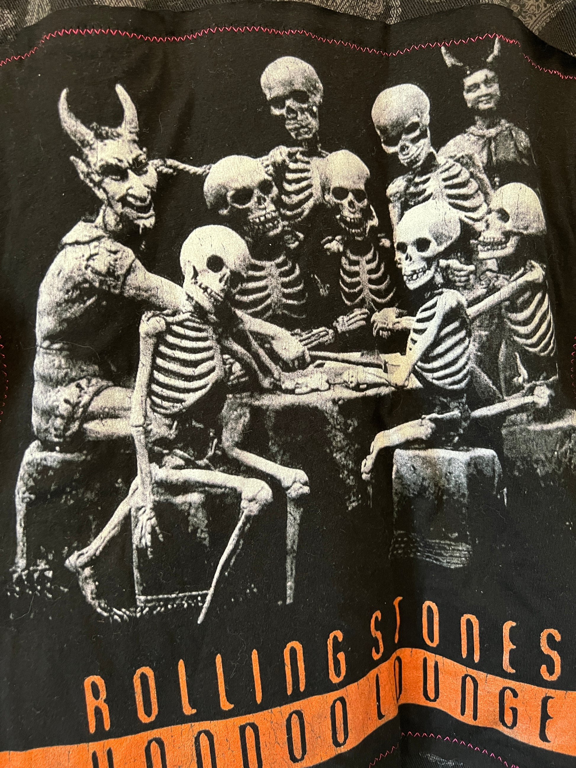 NWT Levi’s Paisley XL Denim Jacket with upcycled vintage Rolling Stones Voodoo Lounge tshirt elements. Mens size XL / Unisex.