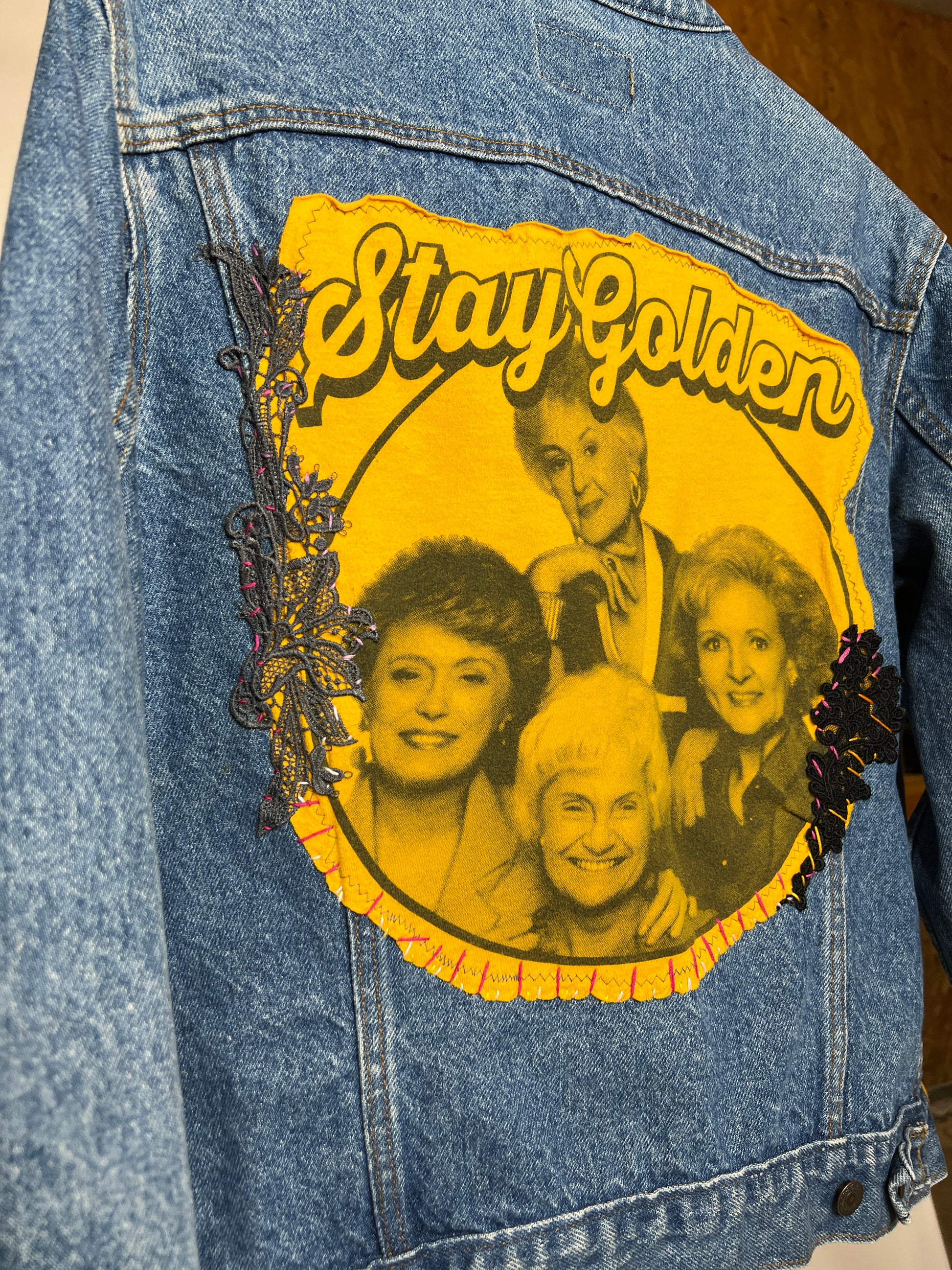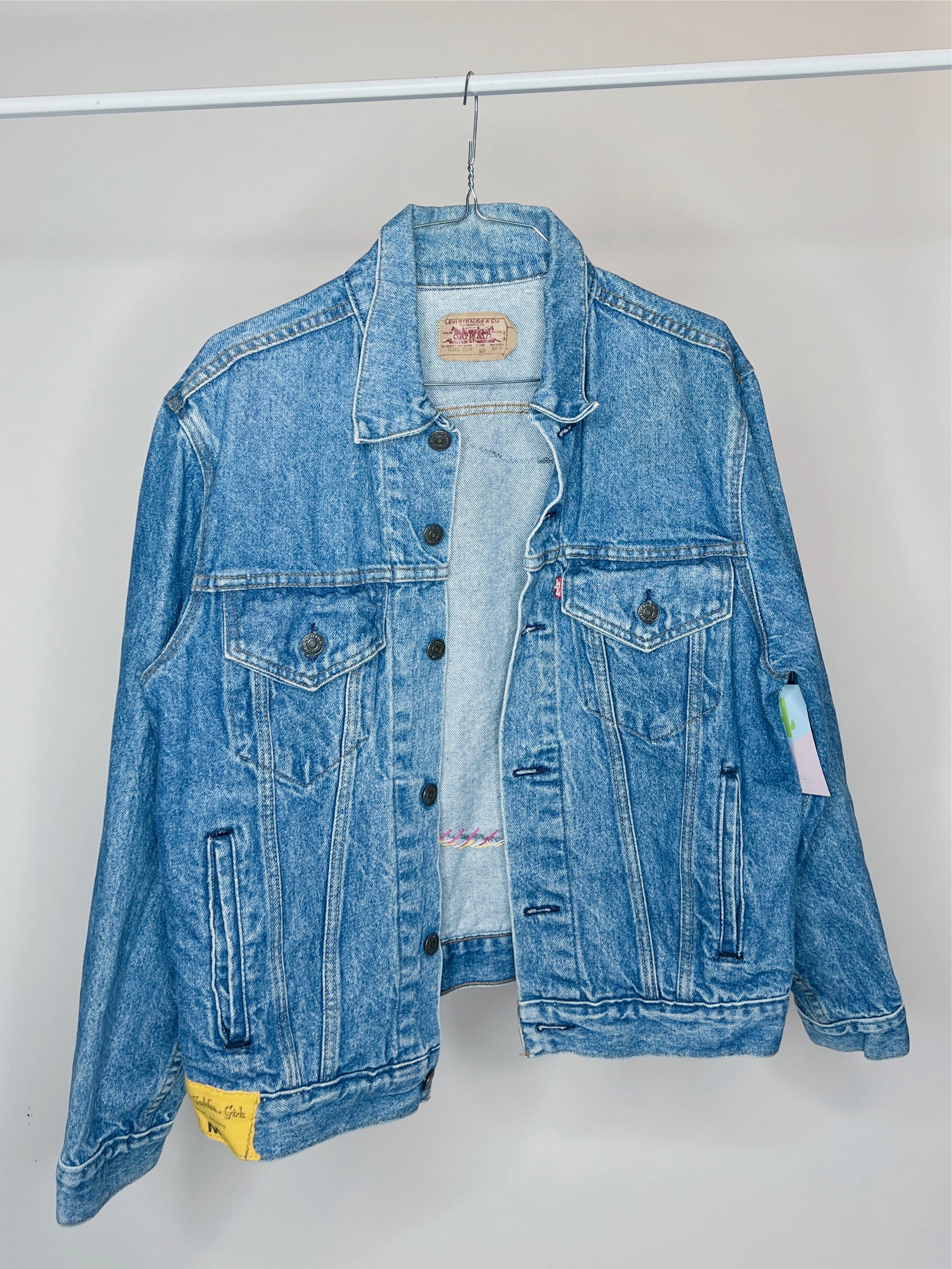 Upcycled Vintage Levi's Golden Girls Denim Jacket. Mens size Large. Fits like modern mens Med/Women's oversized large.